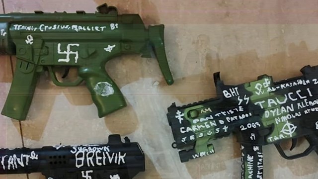 Las autoridades allanaron el departamento donde vive el menor y encontraron varias armas de juguete, las cuales tenían escrito con liquid paper nombres de famosos autores de masacres, como Pan Triste y Junior, e inscripciones nazis. También encontraron armas blancas, gas pimienta y un cuaderno donde el joven dejó por escrito su plan de ataque y una carta de despedida.