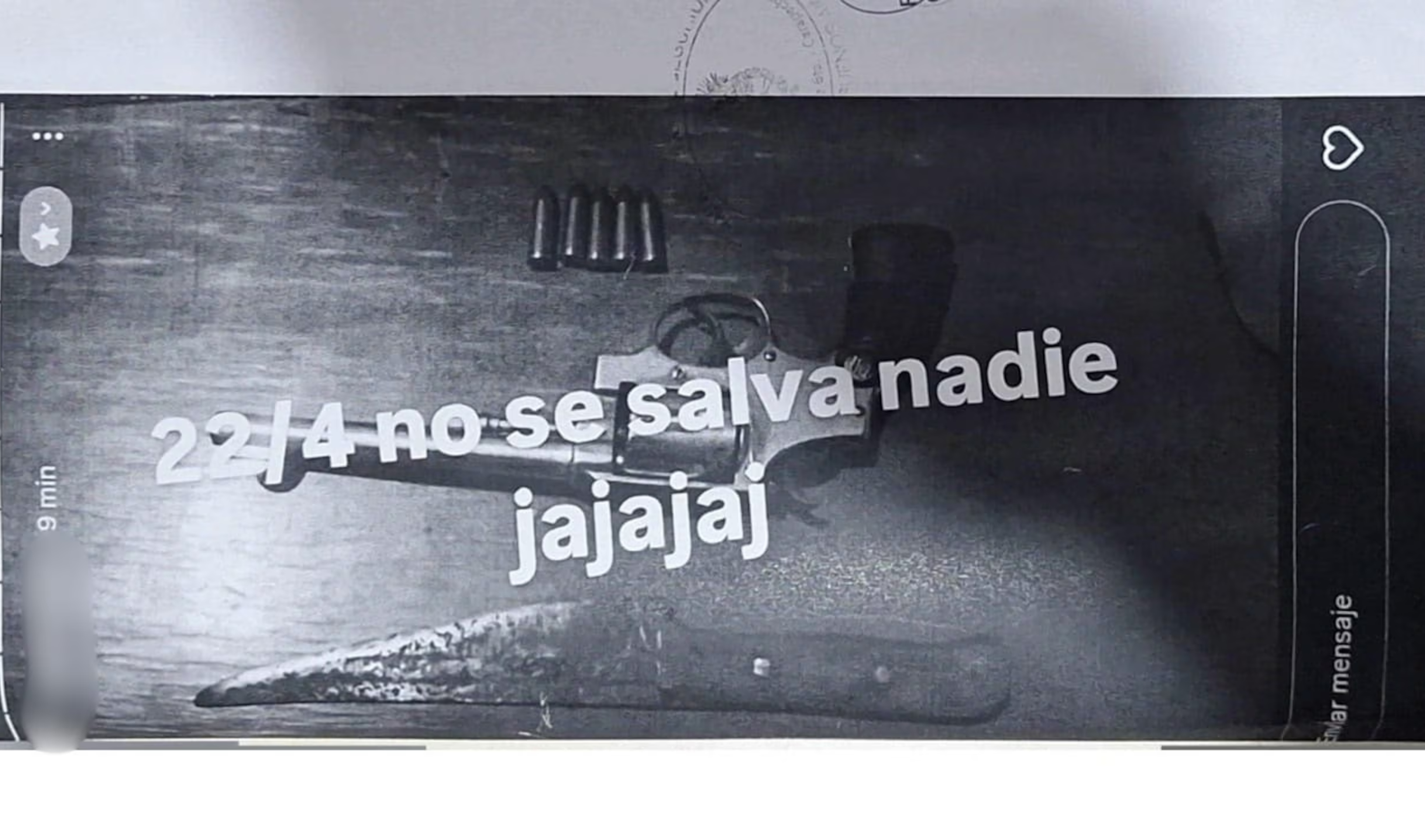 "El 22/04 no se salva nadie jajajaj”, había escrito el joven en una historia de Instagram que acompañó con la foto de un arma de fuego. Se trata de un alumno de la Escuela Secundaria Técnica N°1 de la localidad de Vicente López, cuya identidad fue reservada.