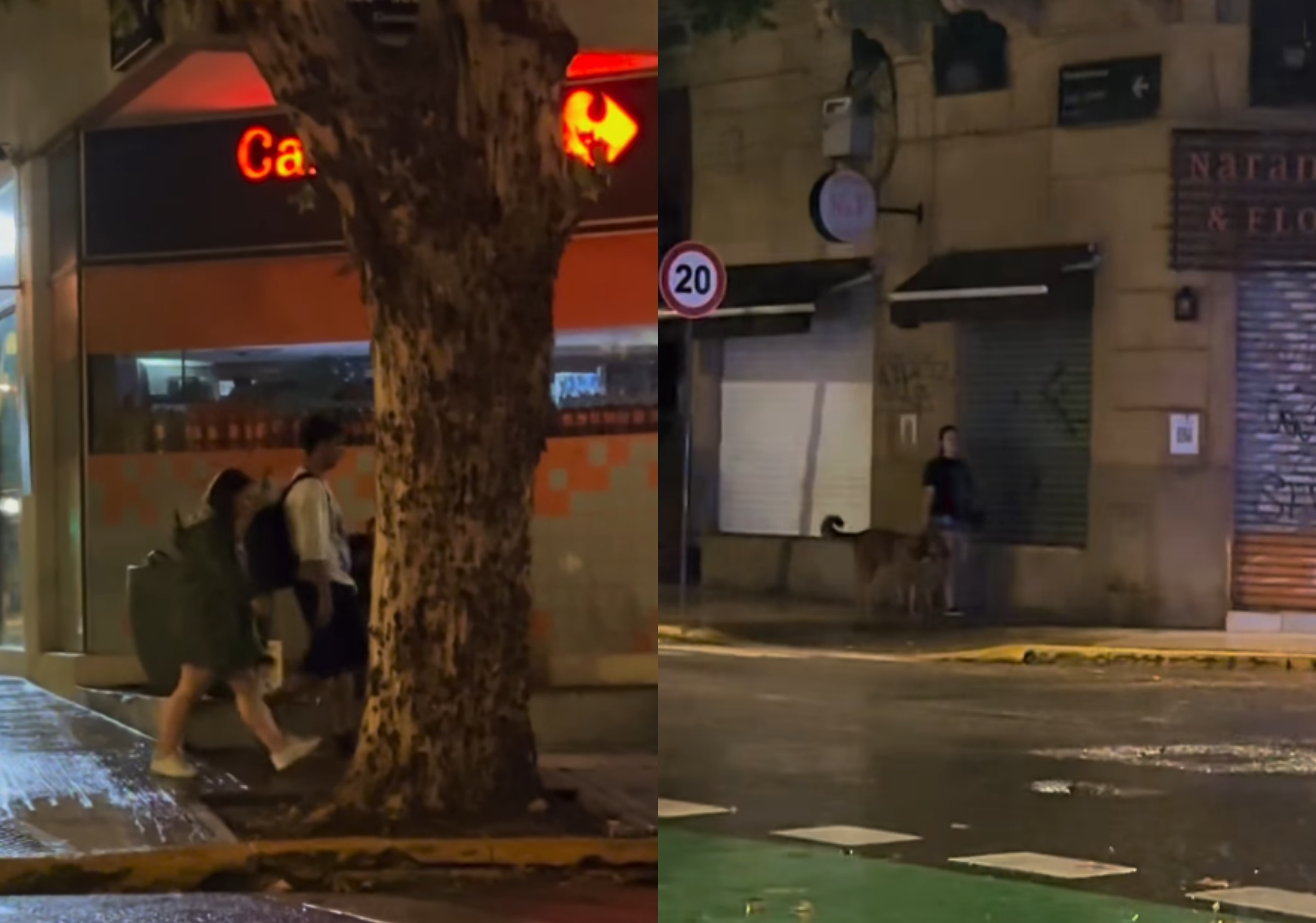 Unos pocos buscaron refugio bajo un "techito" a la espera de que el agua cese, mientras que otro prefirieron seguir su camino sin siquiera usando capucha.
